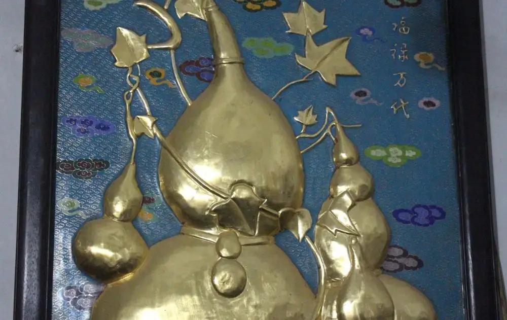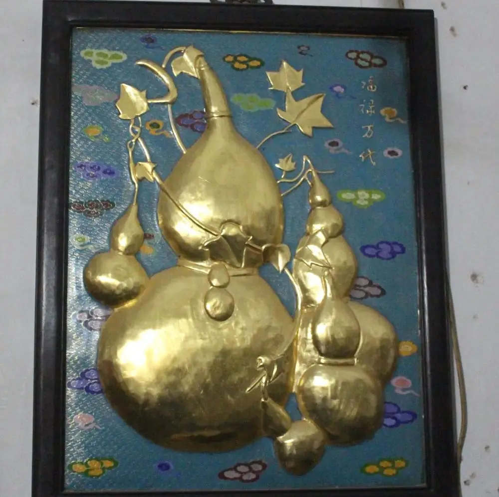 Best 32" Cloisonne Enamel Gold Gilt Cucurbit Calabash Wall Hang Screen Folding Screen