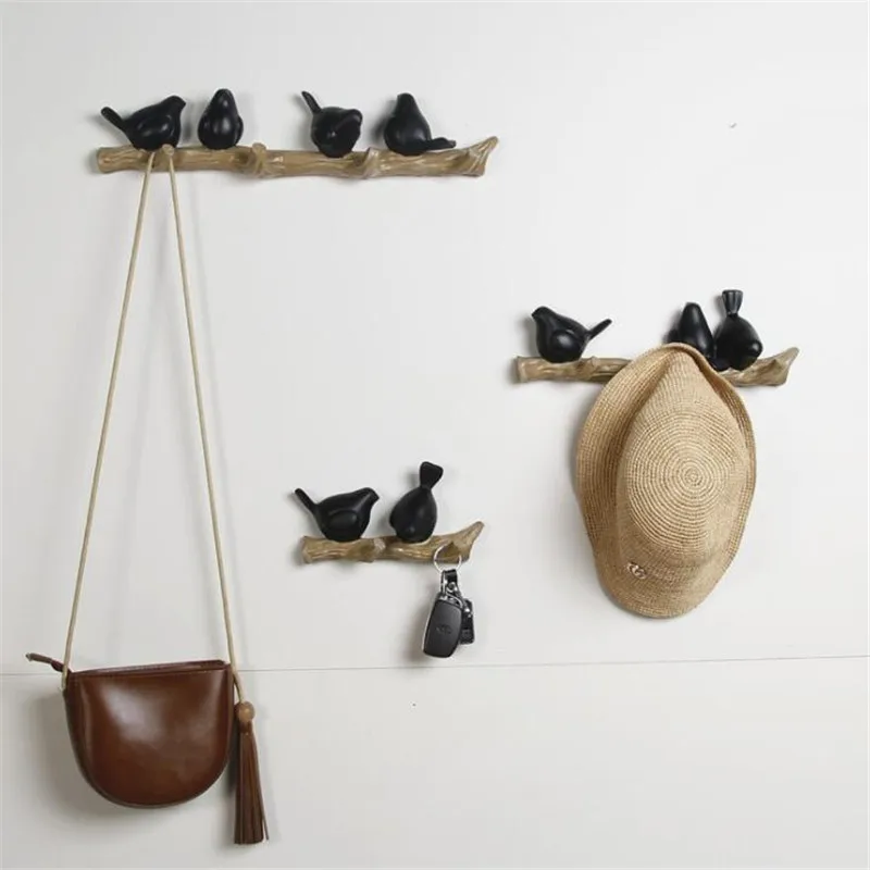 Review Nordic three-dimensional Bird Shape hat coat rack wall decoration hook Rail hat Clothes Hanger key