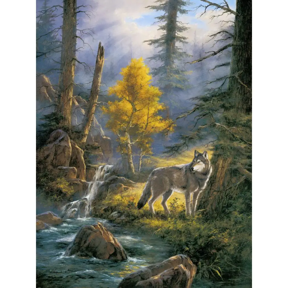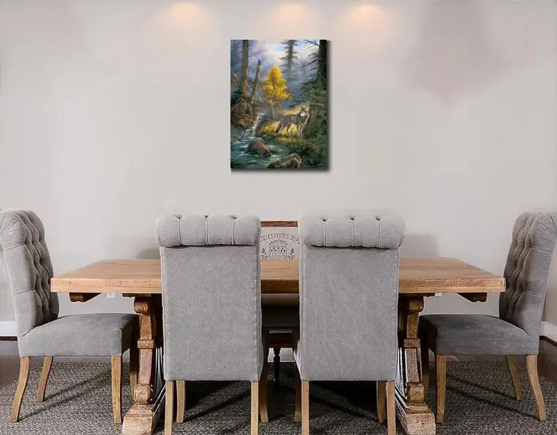ORIGINAL Modern landscapes paintings Timber Wolf hand painted natural animal picture canvas art home decor